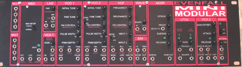 The Evenfall Mini Modular Synthesizer is a rack mountable semi-modular analog synthesizer featuring the warm, organic sound of real analog circuitry and the flexibility of individual control knobs and a patch cord interface.